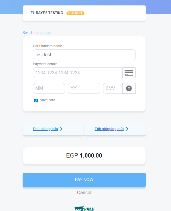 "redirect_url": "https://secure.paytabs.com/payment/page/599458B182E5B6B********************B4818688", - Finally, you will need to redirect your customer to this URL for them to proceed with the payment process. The customer will be directed to the payment page where the check box of save card appears under the card details. You may want to check the customer experience in the upcoming section on Expected Payment Flow Behavior.